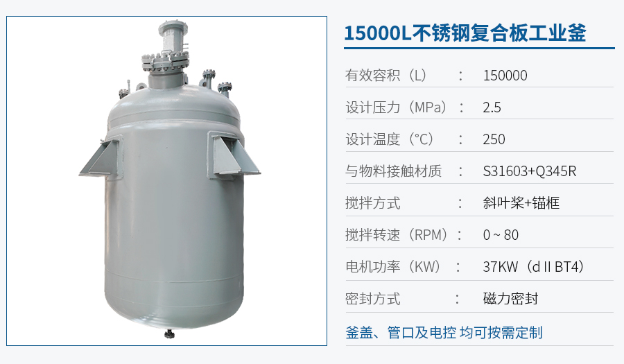 | 主要材料 | 釜體材料主要采用不銹鋼與碳鋼復(fù)合材質(zhì) S30408(304)+Q345R、S31603(316L) +Q345R、S32168(321)+Q345R, 也可是純不銹鋼材質(zhì),并可根據(jù)不同介質(zhì)要求制作鈦材、鎳材、鋯材、哈氏合金、蒙耐爾合金等復(fù)合材質(zhì)反應(yīng)釜,也可根據(jù)客戶要求主要材料噴涂四氟PTFE/PPL。 | ||||||