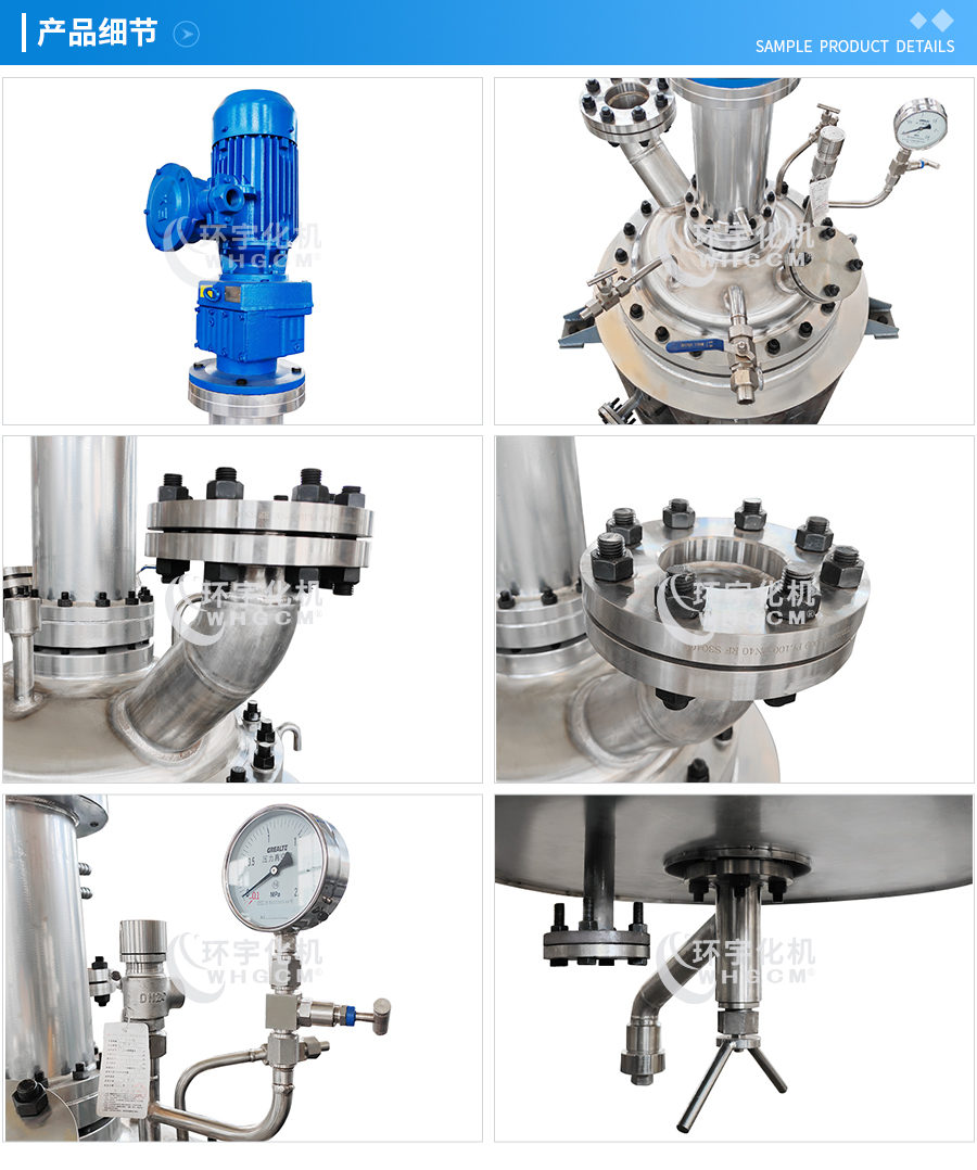 其他附件 如果用戶在釜蓋、釜體開口、內(nèi)部結(jié)構(gòu)、壓力高低、攪拌槳葉、及增加其他輔助裝置(如冷凝回流裝置、冷凝器、恒壓加料罐、接收裝置)等有特殊要求,可完全按用戶的要求加工制造